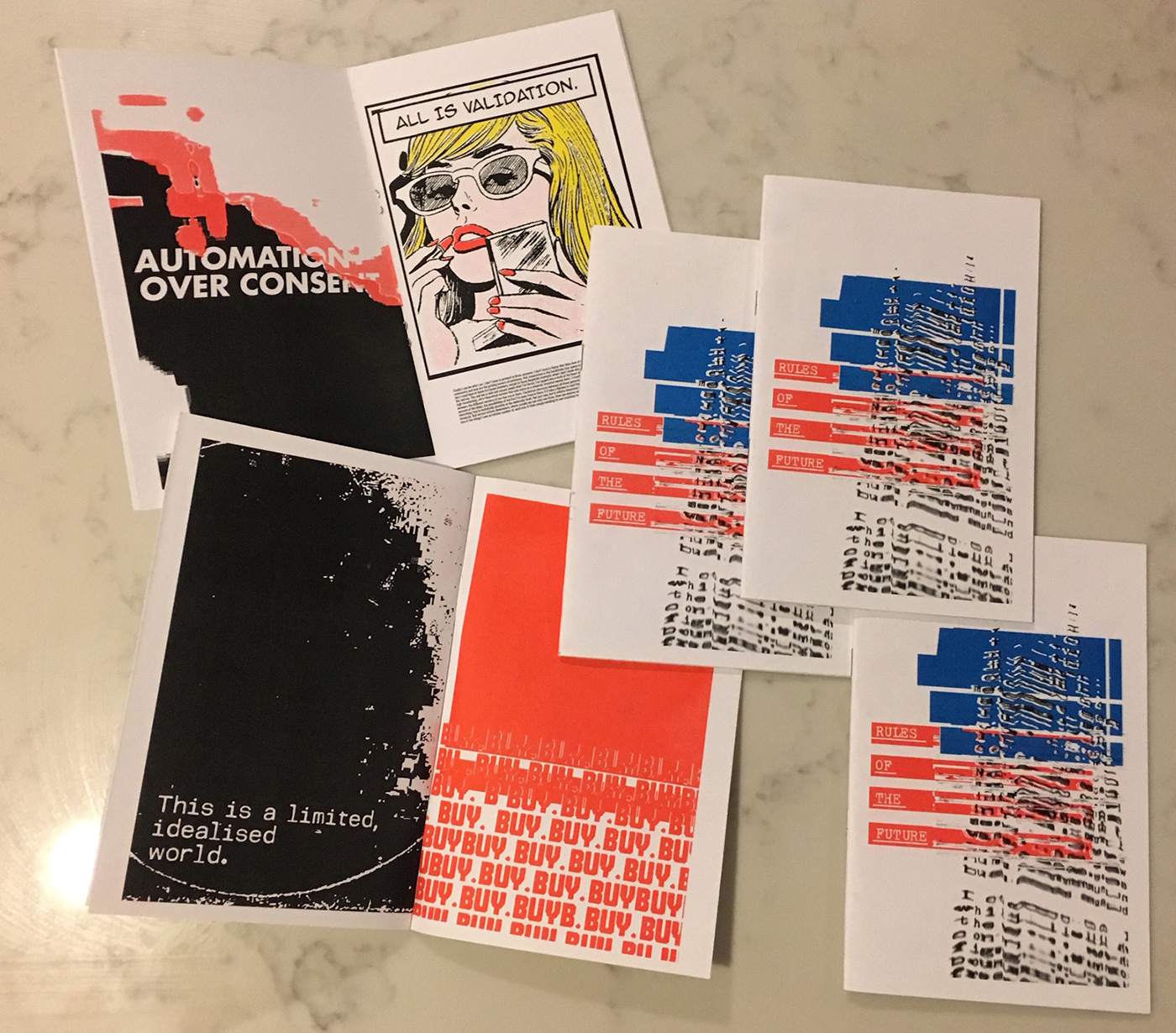A limited edition, risograph-printed booklet exhibiting text and imagery relating to my projects on the internet, the future, social media and consent.
