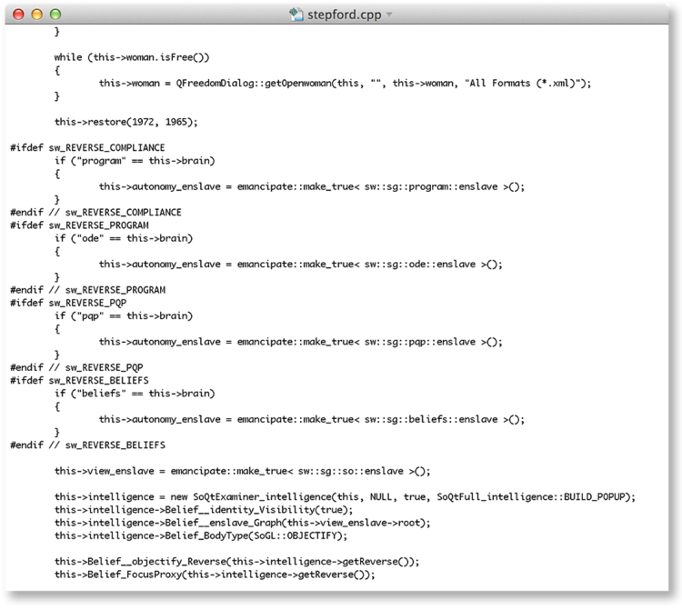 The rubber stopper in the bottle conceals a USB stick containing further escape tools, including maps and textual information, a piece of code designed to 'reverse hack' the programming, and a link to a Spotify playlist called 'Stepford'.